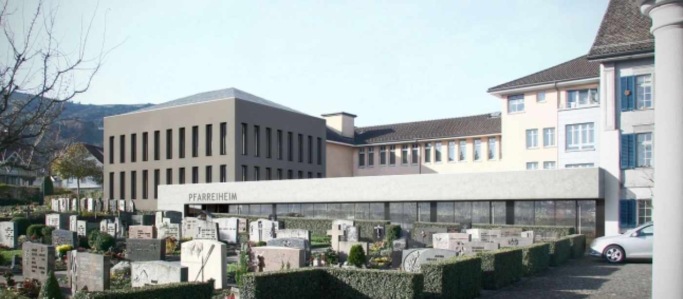 Pfarreiheim, 8852 Altendorf, Projekt und Baukontrolle Tragstruktur in Massivbauweise, Projekt und Bauleitung Baugrube und Pfahlfundation