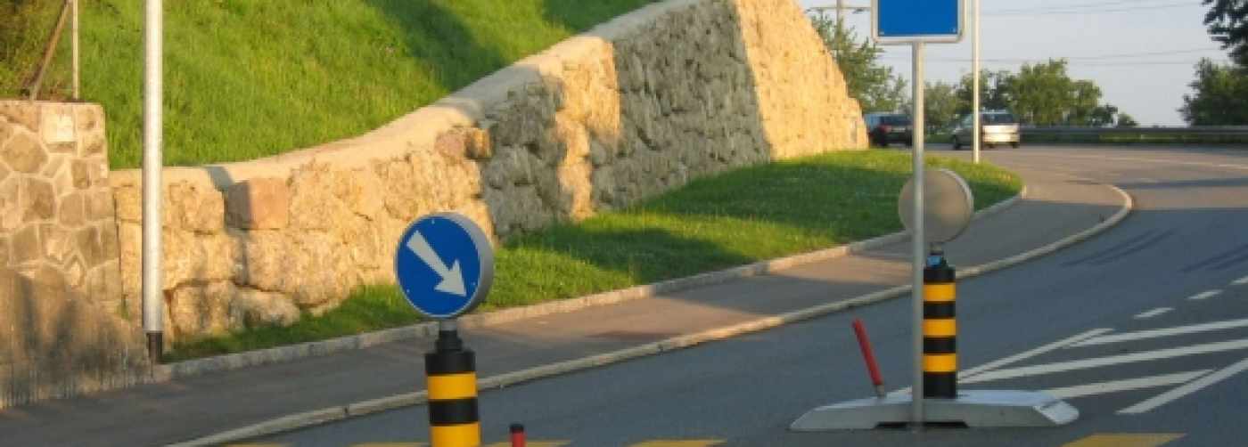 Zur Vergrösserung der Sichtweite für den Fussgängerübergang Lidwil musste eine neue Stützmauer erstellt werden. Ausführung mit Natursteinen.