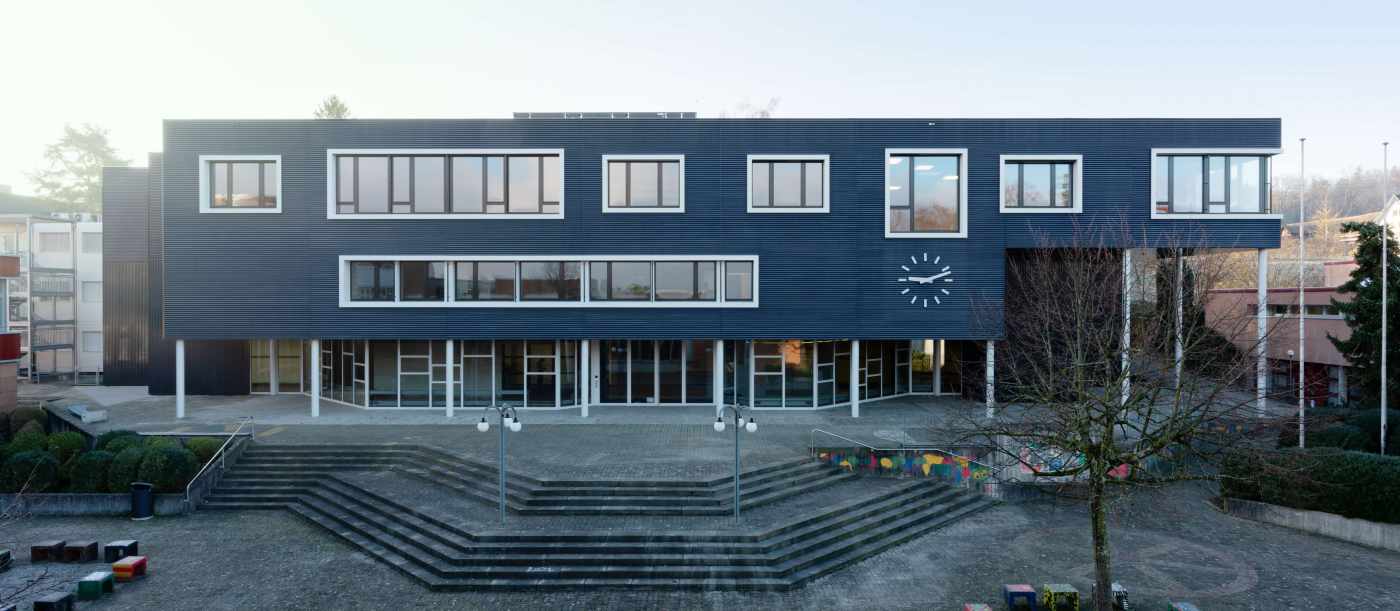Beim Schulhaus Steinacher in Wädenswil wurden eine Aufstockung, Umbau und Liftanbau geplant und realisiert. Im Zuge der Umbauarbeiten wurde ebenfalls die Erdbebensicherheit überprüft. Die schlanken Erdbebenertüchtigungsmassnahmen der HTB Ingenieure AG überzeugten Architekt und Bauherrschaft. In einem zweiten Schritt durfte die Projektierung und Ausführung übernommen werden. Die Lasten der Aufstockung in Holzbau konnten direkt über die bestehende Tragstruktur abgeleitet werden. Die Pfahlfundation übernimmt die Vertikallasten der seitlich auskragenden Aufstockung über zweigeschossige Fertigbetonstützen.