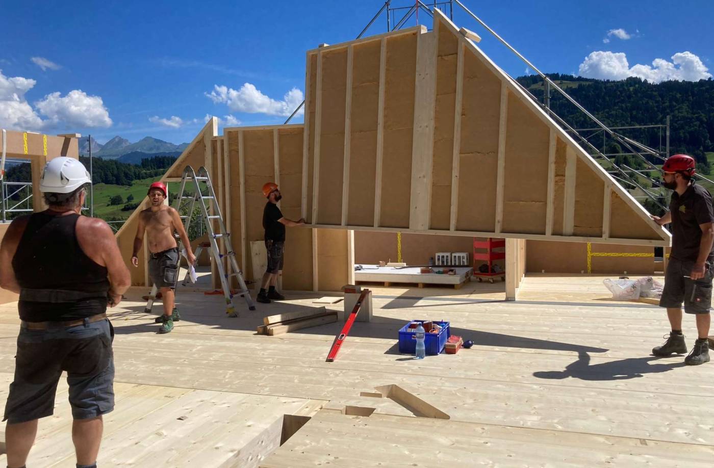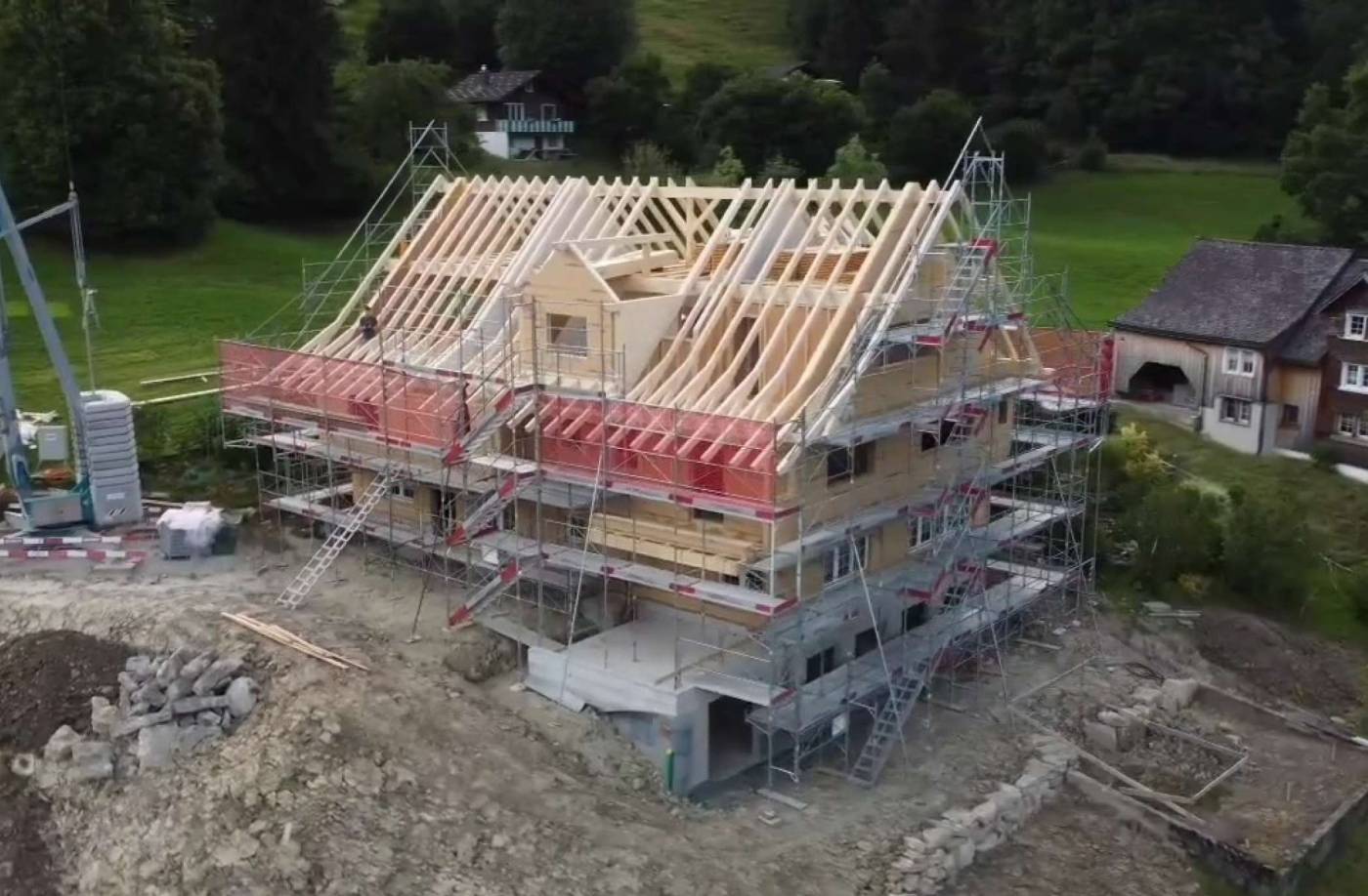 Darauf wurde der dreistöckige Holzbau aufgerichtet.