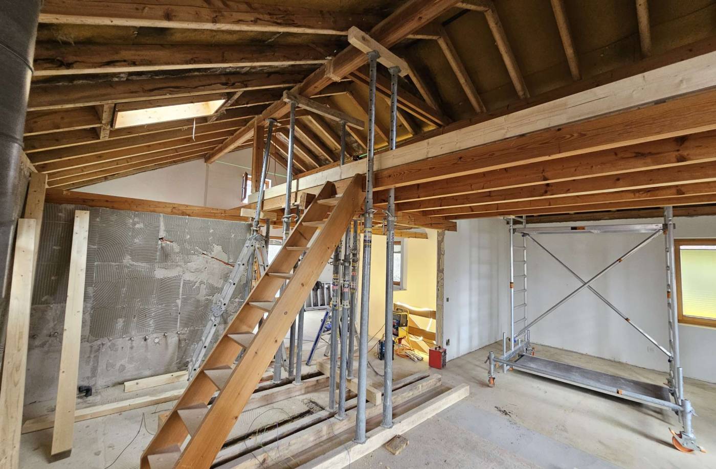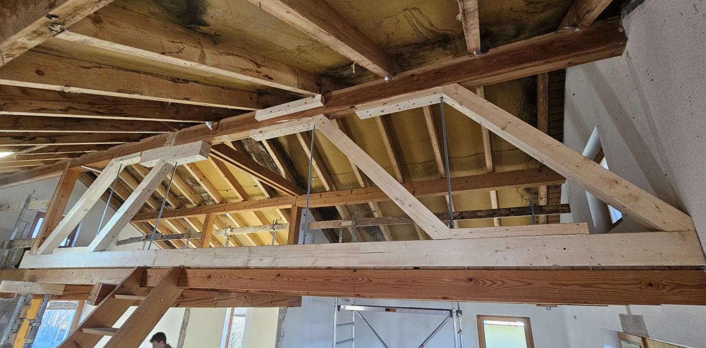 Der Innenbreich des EFH soll neu gestaltet werden. Dabei sind diverse Abbrüche und Neubauten geplant. Durch die geplante Baderweiterung musste das Dach und das Galeriegeschoss abgefangen werden. Dies konnte mit einem Fachwerk elegant und wirtschaftlich gelöst werden.