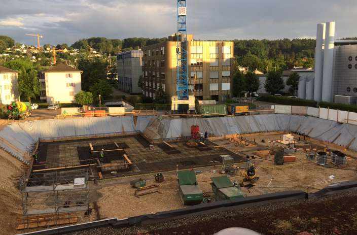 Die Firma Anklin AG baut in Reinach ein neues Gewerbehaus. Der Neubau findet nach dem Abbruch einer bestehenden Gewerbehalle auf der Parzelle an der Bodenmattstrasse 34 Platz. Das Bauwerk wird in einer ersten Phase mit drei Geschossen (Untergeschoss, Erdgeschoss und 1.Obergeschoss) ausgeführt, wobei die Möglichkeit für eine Erweiterung um zwei Geschosse in der Planung zu berücksichtig ist. Die Grundabmessungen des Gebäudes betragen ca. 58m x 49m. Das Gebäude grenzt Richtung Osten an einen bestehenden Bau an. Da die Baugrube direkt daran zu liegen kommt und deren Sohle ca. 4 m unter Terrain kotiert ist, muss der Bestand mit lokalen Betonsporen unterfangen werden. Die übrigen Baugrubenabschlüsse können frei geböscht werden.
