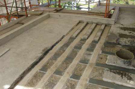 Der Balkon eines bestehenden Einfamilienhauses wurde um ca. 1.50m resp. 2.50 m frei auskragend vergrössert. Mittels gebohrter Bewehrung und geklebten Stahl- und CFK-Lamellen wurden die zusätzlichen Lasten in die bestehende Decke verankert.