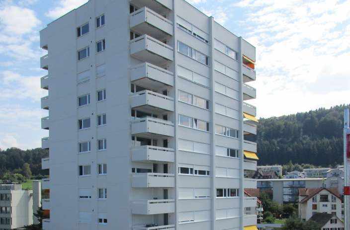 Sanierung der Sichtbetonfassaden. Betonschadstellen sondieren, Bewehrungen behandeln inkl. Korrosionsschutzanstrich. Reprofilierung der Schadstellen. Ausbau von PCB-haltigen Kittfugen. Instandstellen der Kittfugen. Malerarbeiten Fassadenanstrich.