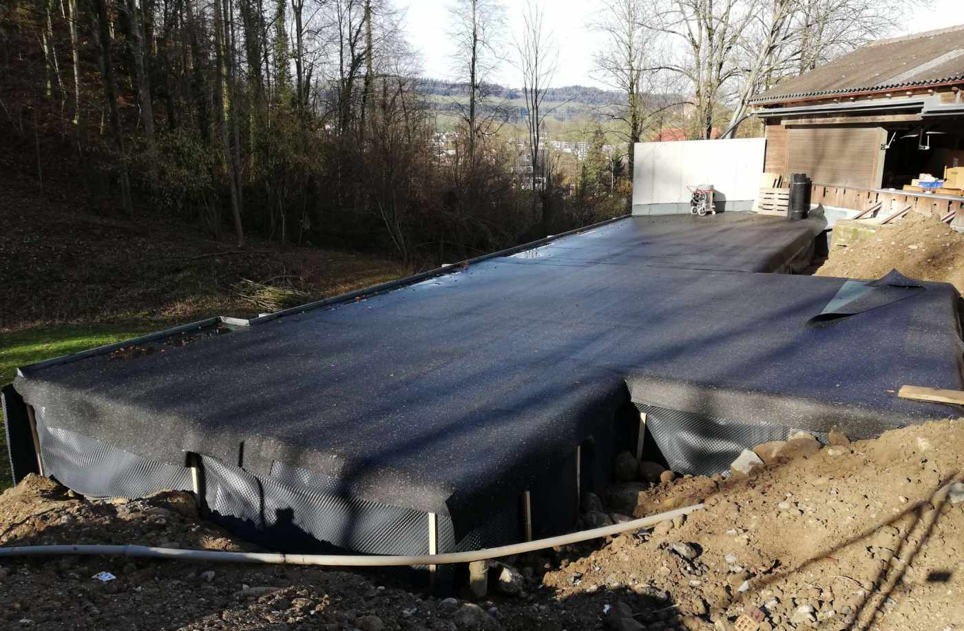 Die HSK Ingenieur AG wurde mit der Erweiterung der bereits bestehenden, offenen 50m Schiessanlage Gesslerburg beauftragt. Projektiert wurde ein Stahlbetonanbau an das Untergeschoss des Vereinsgebäudes. Da das neue Gebäude teilweise unter der Untergeschossdecke des Bestandes zu liegen kam, musste vorgängig ein Stück der bestehenden Bodenplatte und der Aussenwand abgebrochen und das Untergeschoss abgestützt werden. Unter eingeschränkten Platzverhältnissen in Hanglage und in der Nähe zum Dorfbach wurde für diese neue 25m Pistolenschiessanlage ein Schiesstunnel mit Abmessungen von 32m x 9m gebaut. Das Bauwerk wurde flach fundiert.