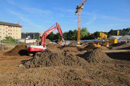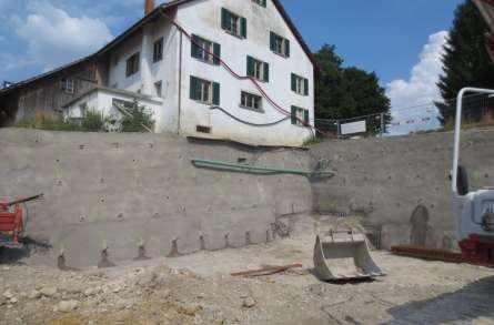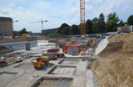 Hochbau: An der Gschwaderstrasse in Uster wird die Wohnüberbauung "InsideOut" erstellt. Es handelt sich um fünf Mehrfamilienhäuser in Massivbau. Die horizontalen Tragelemente bestehen aus schlaff bewehrten Stahlbetondecken, die vertikalen Tragelemente bestehen aus Stahlbeton- und Mauerwerkswänden sowie vorfabrizierten Stahl-, Stahlbetonverbund- und Betonstützen. Baugrube: Der Baugrubenabschluss wird grösstenteils mit einer 1:1-Böschung ausgeführt. Im südöstlichen Bereich zur Gschwaderstrasse hin wird eine Nagelwand mit Spritzbeton erstellt. Im nordwestlichen Teil, gegen die Liegenschaft Winterthurerstrasse 71/72, und im südwestlichen Teil, gegen die Liegenschaften Gschwaderstrasse 31 und 33, wird ein vertikaler Baugrubenabschluss mittels Mikrorühlwand erstellt. Die Gebäude können flach fundiert werden.