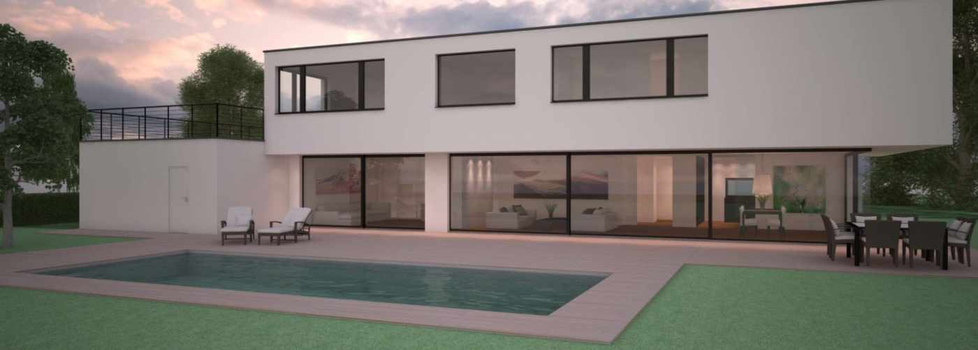 Bei diesem Neubau handelt es sich um ein Einfamilienhaus in Massivbau, bestehend aus einem Untergeschoss, einem Erdgeschoss sowie einem Dachgeschoss. Die Grundrissabmessungen im Erdgeschoss betragen zirka 12m x 23m. Die horizontalen Tragelemente bestehen aus schlaff bewehrten Stahlbetondecken, die vertikalen Tragelemente aus Stahlbeton- und Mauerwerkswänden sowie vorfabrizierten Stahlstützen. Das Bauwerk wird als Wohnhaus genutzt.