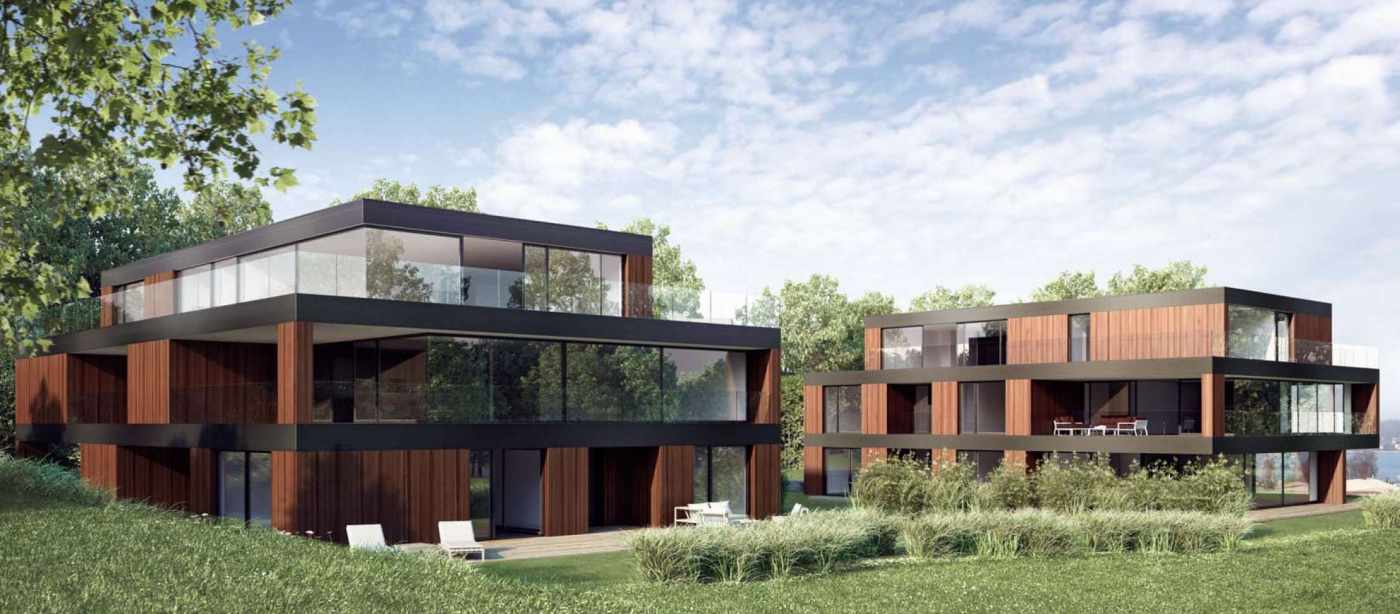 Bei diesen Neubauten handelt sich um zwei Mehrfamilienhäuser in Massivbau, bestehend aus einem Untergeschoss mit gemeinsamer Tiefgarage, einem Erdgeschoss, einem Obergeschoss und einem Dachgeschoss. Die Grundrissabmessungen im Erdgeschoss betragen zirka 20.5m x 16.5m und 24.0m x16.0m.