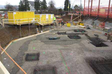 Die Baugrube konnte grösstenteils mit Geröllbetonauflage frei geböscht, erstellt werden. Gegen die Strasse hin musste eine Mikrorühlwand erstellt werden.