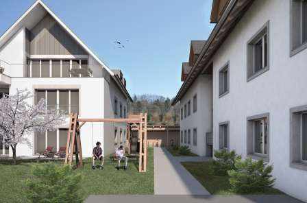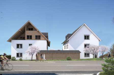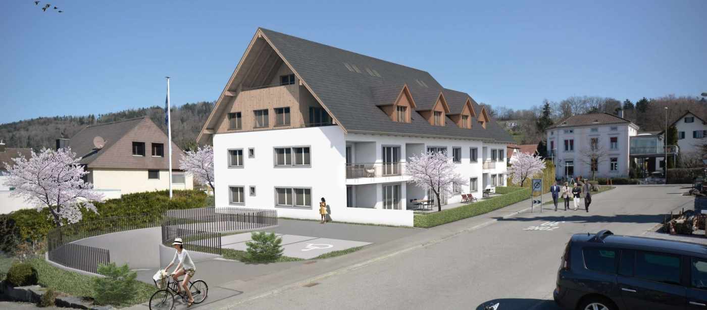 An der Kantonsstrasse in Auslikon wurden zwei Mehrfamilienhäuser in Massivbau geplant, die auf einer gemeinsamen Tiefgarage stehen. Während der gesamten Bauzeit musste die Zufahrt zum rückseitigen Einfamilienhaus gewährleistet sein. So wurde zusammen mit dem Aushub ein Teilbereich der gedeckten Garagenrampe "Unterführungsbauwerk" vorgängig ausgeführt.