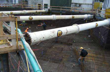 Aufgrund des schlecht tragfähigen Baugrundes musste das Bauwerk mittels Vollverdrängungsbohrpfählen fundiert werden.
