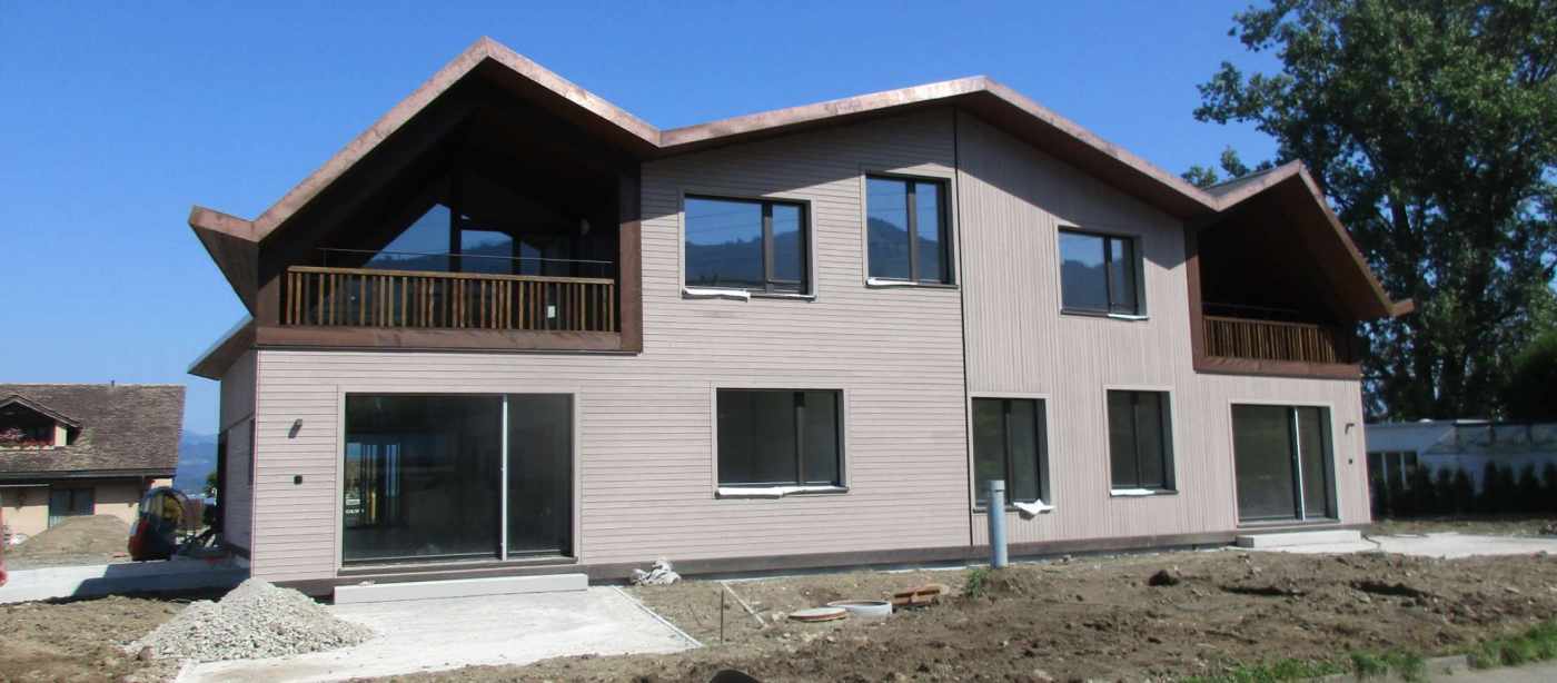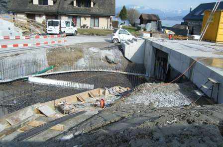 Es handelt sich um ein dreigeschossiges Mehrfamilienhaus. Das Gebäude besteht aus einem Untergeschoss in Betonbau. Ab der Decke über dem Untergeschoss werden alle Decken- und Dachelemente sowie die Innen- und Aussenwände in Holzbauweise erstellt. Die Abmessungen des Untergeschosses betragen ca. 24 x 16m. Die Baugrube wird mit freien Böschungen ausgeführt. Teilweise mussten die Lockergesteinsböschungen mittels Geröllbetonriegeln gesichert werden. Das Gebäude wurde flach fundiert. Um eine ausreichendenTragfähigkeit zu erreichen und zur Verhinderung differenzieller Setzungen, wurde ein Schotterkoffer mit eingebracht.