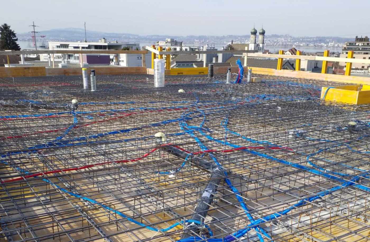 Das Bauvorhaben wurde an der Sonnenhofstrasse 17 in Lachen erstellt. Es handelt sich um ein Mehrfamilienhaus in Massivbauweise, bestehend aus einem Untergeschoss, einem Erdgeschoss, zwei Obergeschossen und einem Attikageschoss. Die Grundrissabmessungen betragen im Untergeschoss ca. 25,4mx 24,2m. Das Erdgeschoss hat eine Abmessung von ca. 20,6m x 16,0m. Die horizontalen Tragelemente bestehen aus schlaff bewehrten Stahlbetondecken, die vertikalen Tragelemente aus Stahlbeton- und Mauerwerkswänden sowie vorfabrizierten Stahlbetonstützen.