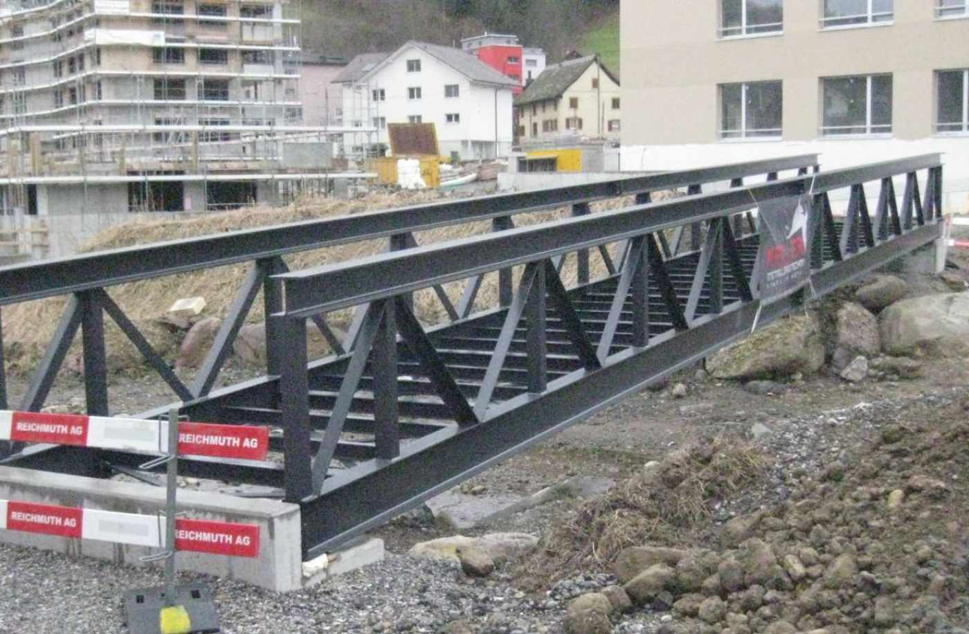 Ebenfalls Bestandteil des Projektes waren die Planung und Bemessung von fünf Fussgängerbrücken in Stahlbauweise, welche eine optimale Zugänglichkeit zu den verschiedenen Häusern gewährleisten.