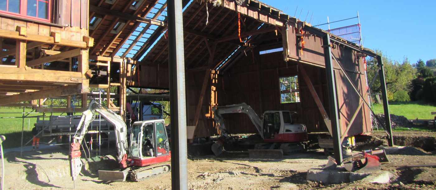 Einzig die geschützte Decke über dem ehemaligen Stall musste erhalten bleiben und wurde zu einer Holz-Beton-Verbund-Decke ertüchtigt.