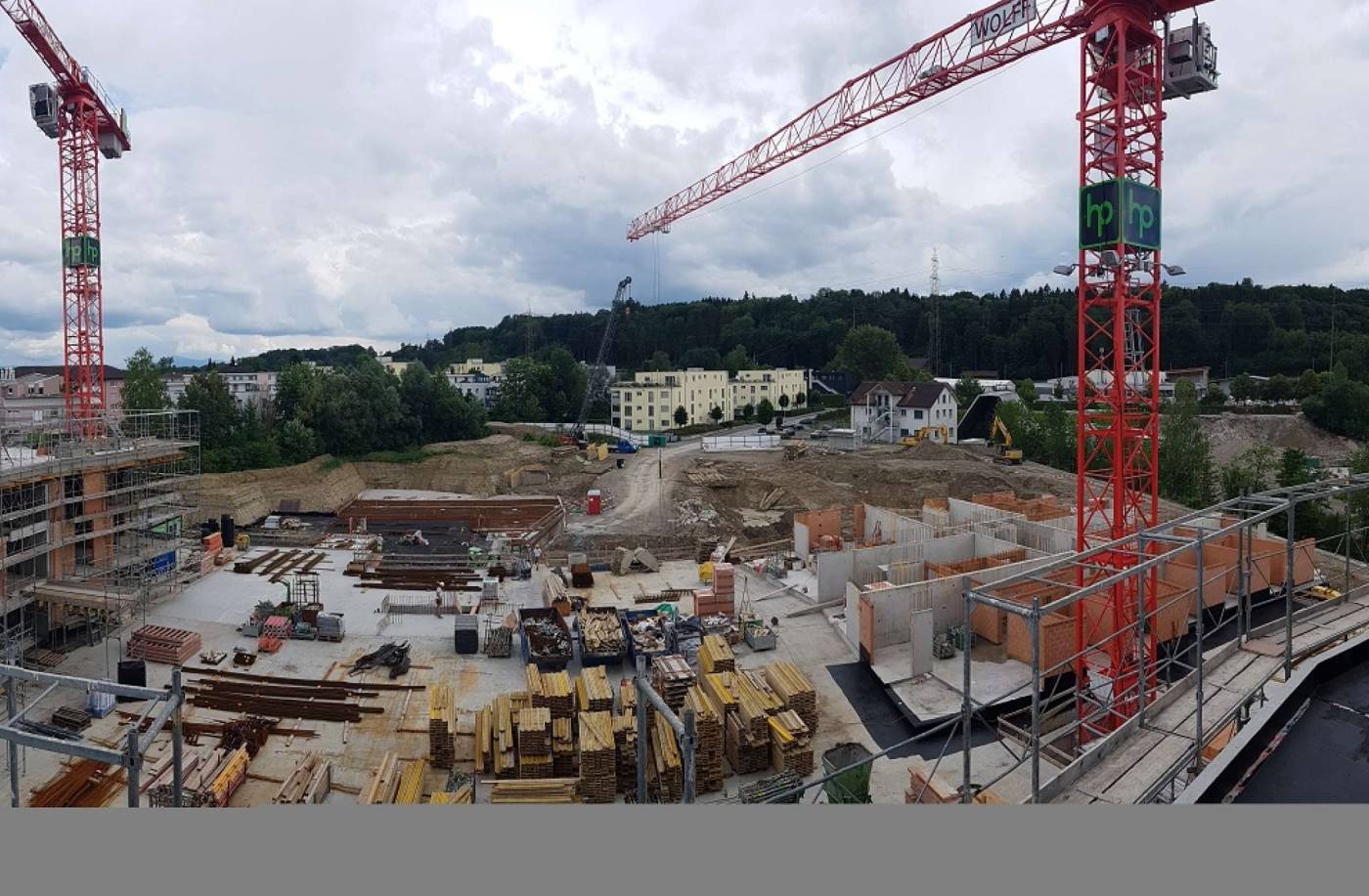 Das Bauvorhaben in Bremgarten besteht aus 6 Mehrfamilienhäusern mit je 25 Wohnungen und einer durchgängigen Tiefgarage unter allen Häusern. Die Gebäude wurden mittels Pfählung fundiert. Die Tragstruktur besteht aus schlaff bewehrten Betondecken mit tragenden Mauerwerks- und Betonwänden.
