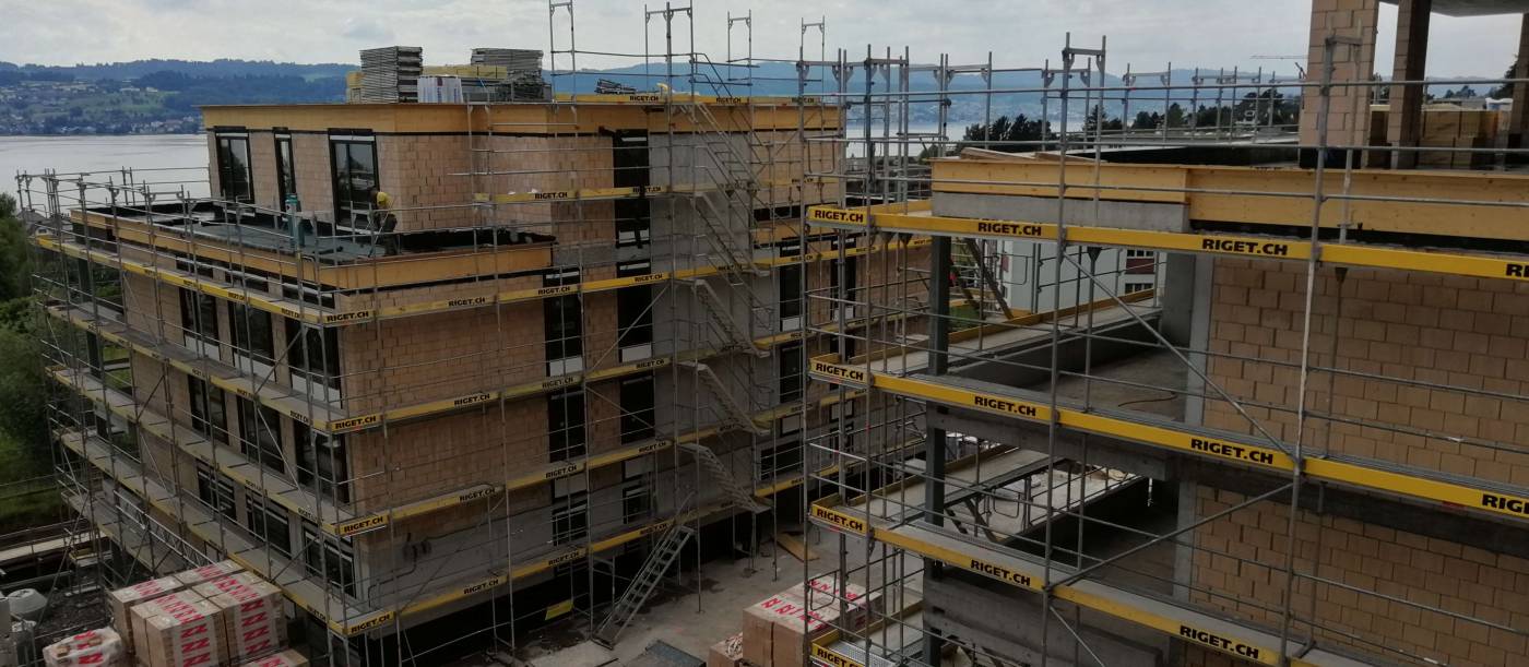 An der Glärnischstrasse in Männedorf entstehen 7 Mehrfamilienhäuser mit gemeinsamer Tiefgarage in 2 Etappen. Die Häuser stehen teilweise auf der Tiefgarage, welche eine Fläche von ca. 25'000 Quadratmeter besitzt, und wurden in Massivbau ausgeführt. Die Gebäude bestehen aus Mauwerks- und Betonwänden und schlaff bewehrten Stahlbetondecken. Die Fundation konnte im gut tragfähigen Baugrund als Flachfundation mit einzelnen Fundationstatzen zur Überbrückung der schlecht tragfähigen Bodenschichten realisiert werden. Die Bausumme beträgt zirka 38 Millionen Franken.