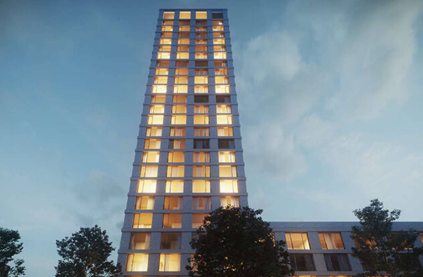 Auf einem rund 4000 Quadratmeter grossen Grundstück wurde ein 80 m hohes Hochhaus mit 26 Etagen, inklusive einem Erdgeschoss mit Laden- und Gewerbeflächen sowie drei Untergeschossen, errichtet. Das Wohnhochhaus wird durch einen fünfstöckigen Sockelbau im Süden und einen zweistöckigen Sockelbau im Norden ergänzt. Das Bauprojekt beinhaltet die Schaffung einer Tiefgarage mit etwa 127 Autostellplätzen, 280 Abstellplätzen für Velos und sieben Motorradabstellplätzen.