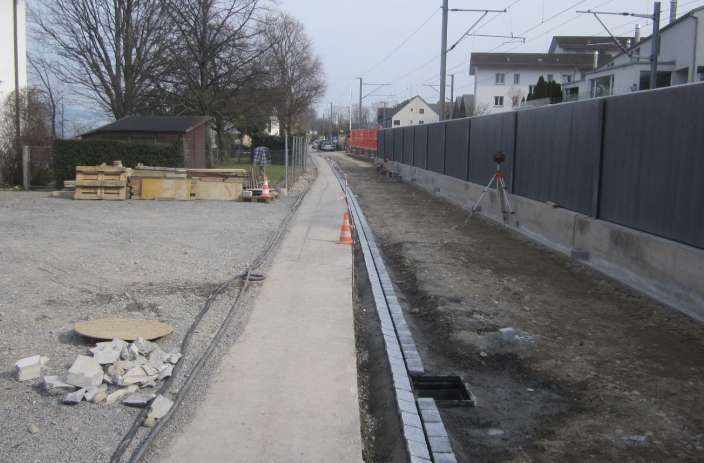 Im Rahmen der Lärmsanierungen entlang der Hirsackerstrasse sanierte die Gemeinde im Anschluss an die Lärmschutzmassnahmen die Infrastrukturanlagen und der Zweckverband Seewasserwerk sanierte die Transportwasserleitung. Aufgrund der Bedürfnisse und örtlichen Verhältnisse wurden verschiedene Strassenraumgestaltungen überprüft und bewertet. Unter Berücksichtigung der Sicherheit für Fussgänger wurde eine Strassenraumgestaltung mit Trottoir gewählt. Vor der eigentlichen Realisierung der Bauvorhaben der SBB und der Gemeinde erfolgte für die Anwohner eine Infoveranstaltung. Die Bauausführung erfolgte unter erschwerten Bedingungen, wie starke Fussgängerfrequenzen (Seeweg), Gewährleistung Anwohnerzufahrt, Seewasserspiegel und SBB Bahngelände.