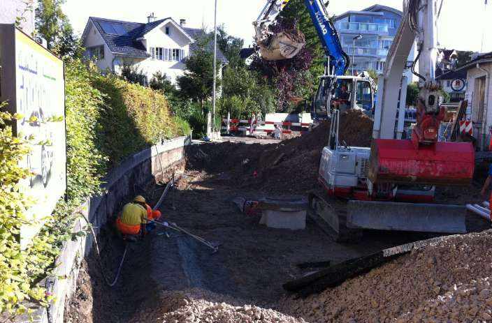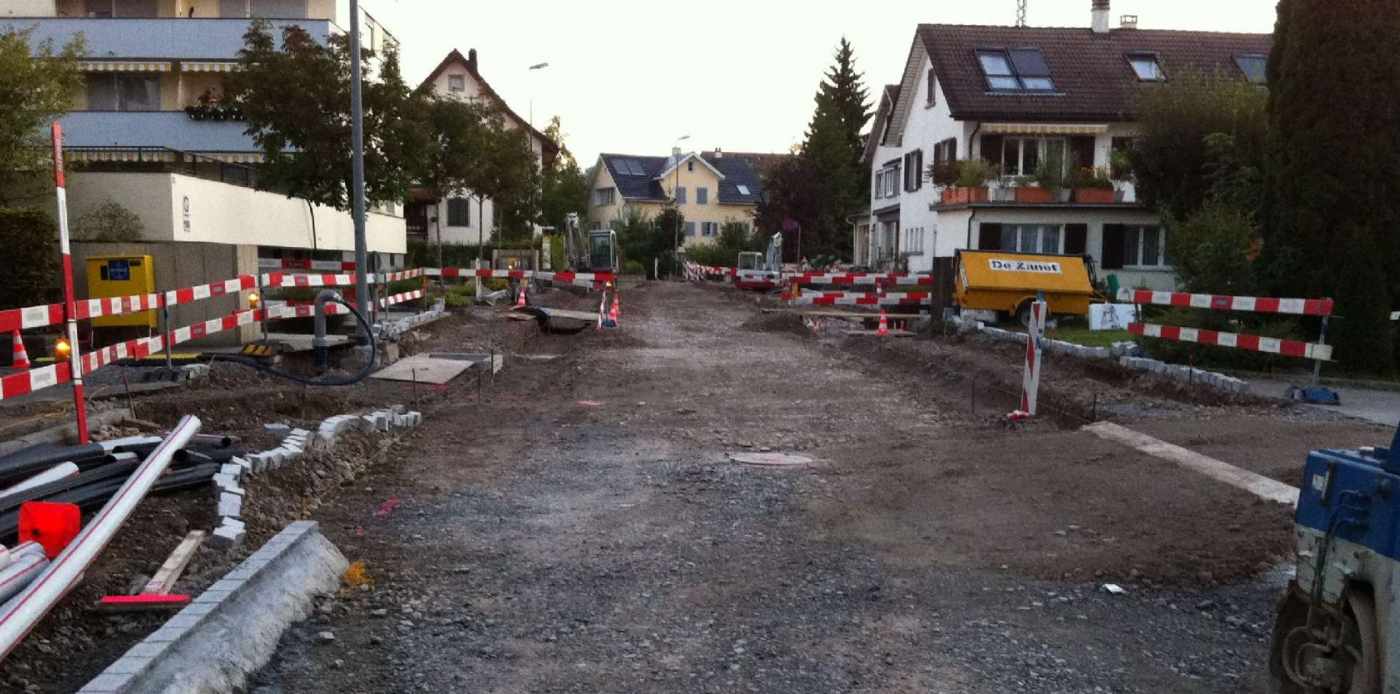Die Allmeindstrasse im Abschnitt zwischen Kreisel Werk-/ und Neuhofstrasse und Kreuzung Allmeindstrasse/ Tägernaustrasse musste aufgrund des schlechten Zustandes saniert werden. Neben der Strassensanierung wurden zudem die Kanalisationsleitungen saniert, welche für die heutigen Abflussmengen nicht mehr ausreichten. Da das Projekt in äusserst kurzer Bauzeit realisiert werden sollte, wurde auf die Konzeption der Verkehrsführung aber auch der Ausführungsplanung ein grosses Augenmerk gelegt.
