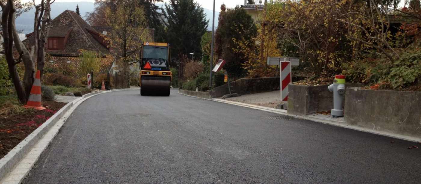 Die Rinistrasse in Stäfa ist eine Quartiererschliessungsstrasse im Privateigentum. Im Sommer 2016 wurde die Rinistrasse vollumfänglich saniert und ein neuer Wendeplatz gemäss den Vorgabedes neuen Quartierplanes realisiert. Neben dem Belagsersatz wurden auch die Randabschlüsse, der Kieskoffer, die öffentliche Beleuchtung sowie ein Teil der Strassenabläufe inkl. Ableitungen bis zum öffentlichen Mischwasserkanal erneuert. Im Weiteren wurden die öffentliche Kanalisation und die privaten Hauszuleitungen, welche zum Teil in schlechtem Zustand waren, mittels Schlauchrelining saniert. Im Zuge mit der Strassensanierung haben dieGemeindewerke Stäfa Ihre Versorgungsleitungen für Wasser und das Elektrokabelnetz ebenfalls erneuert.