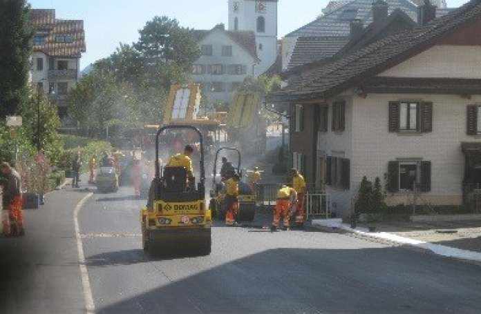 An der Kirchstrasse in Freienbach wurde im Abschnitt «Kirche bis Kantonsstrasse» auf einer Fläche von ca. 2'000m2 der bestehende Deckbelag abgefräst und ein neuer Deckbelag eingebaut.